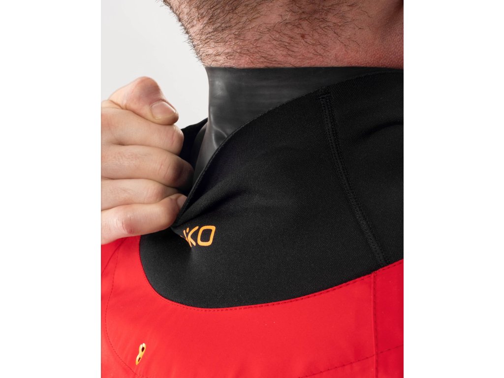 - Latexová těsnění na zápěstí a krku jsou chráněna delšími neoprenovými manžetami pro vyšší vodotěsnost, ochranu latexu i tepelný komfort