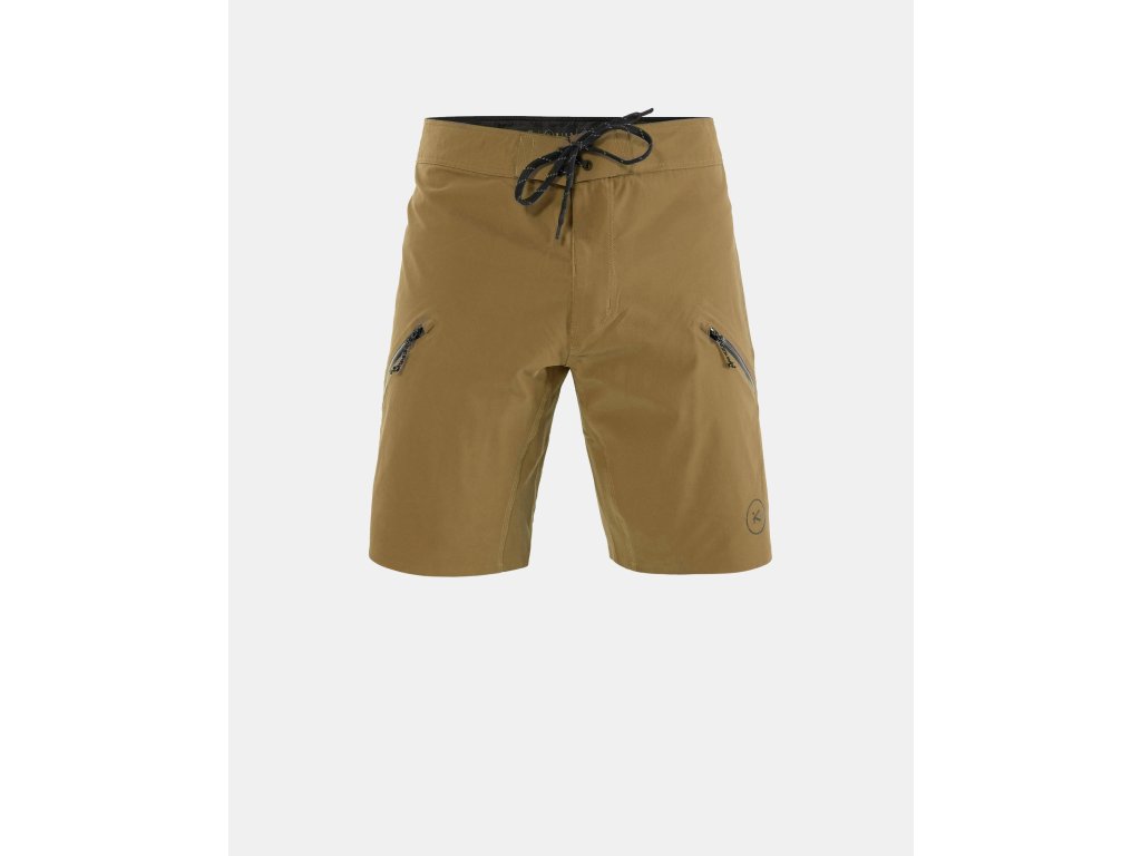 Vyrobeno z recyklovaného nylonu REEF s příměsí spandexu, který je dokonalou kombinací pružnosti a odolnosti. Při prorážení křoví a zdolávání strmých břehů můžete postupovat s jistotou. Bezuhlíkový materiál DWR zajišťuje, že šortky rychle schnou a do našich vodních toků se nedostávají žádné škodlivé chemikálie. Dvě velké přední kapsy na zip jsou snadno přístupné při sezení v kajaku nebo na plážovém lehátku. Budete překvapeni, co všechno můžete začít snadno přenášet. Pas je podšitý semišovou tkaninou s nulovou roztažností, aby vám šortky držely bez ohledu na to, co nebo kdo se je snaží bez vašeho souhlasu stáhnout. Šortky se stahují pevnou, ale měkkou tkaničkou, takže nikdy nedojde ke zlomení přezky nebo pocitu tlaku na břiše. Laserem vyřezávané stahovací pásky s očky jsou speciálně vyztužené pro větší odolnost a pevné držení. Poklopec je podložen pružnou nylonovou tkaninou, takže nikdy neukazujete víc, než je třeba. Spodní lem a kapsy jsou svařeny pro čistý vzhled a minimalizaci odhalování nití.