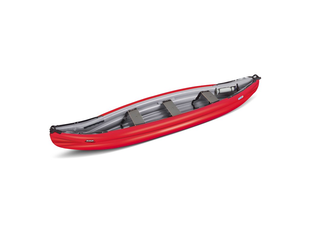 SCOUT je nafukovací kánoe s novodobou konstrukcí. Hlavními přednostmi jsou komfortní výbava, obrovský vnitřní prostor, vysoká nosnost, vyvážené jízdní vlastnosti. To vše ocení dobrodruzi s bagáží, lovci adrenalinu v peřejích i rodiny s dětmi. U tohoto typu lodi rozlišujeme verzi Standard a Economy.