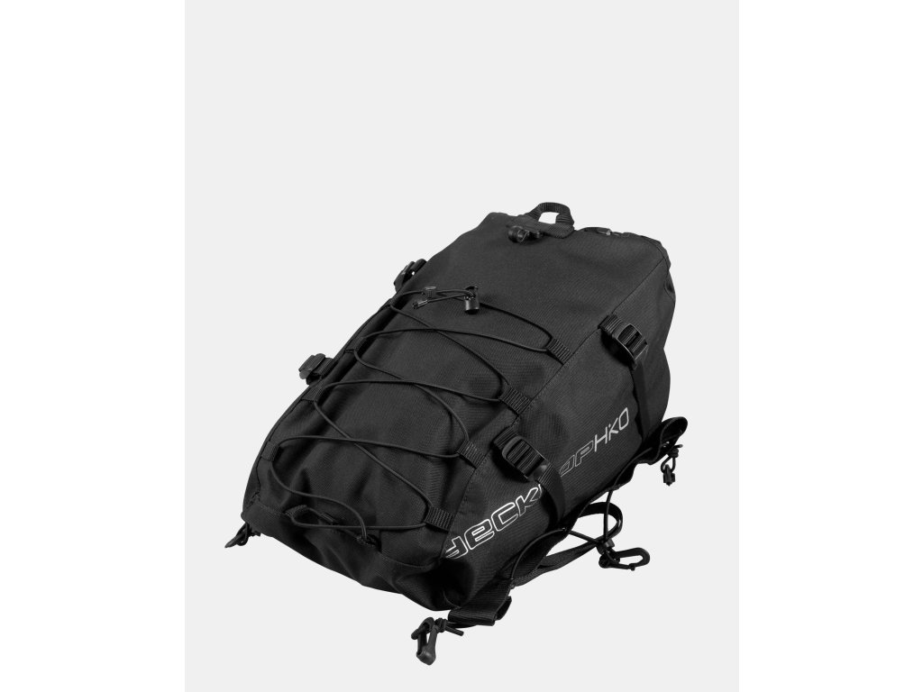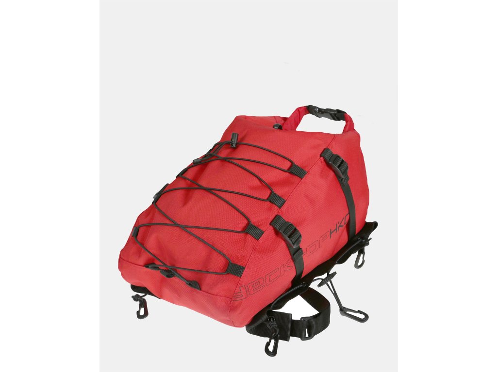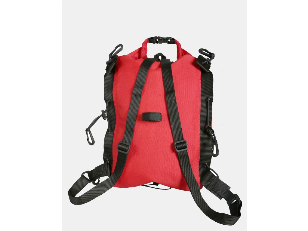 Snadné připevnění k palubnímu lanoví pomocí integrovaných karabinek a gumiček. Navrženo tak, aby se rolovací víko a otvor vždy nacházely nad palubou, takže se nemusíte obávat, že vám věci při otevření vypadnou. Gumička na přední straně pro snadné připevnění dalších věcí. Dva boční popruhy na každé straně buď k upevnění dalšího vybavení, nebo k použití jako kompresní popruhy ke zmenšení objemu vaku. Nastavitelné ramenní popruhy pro snadné nošení.