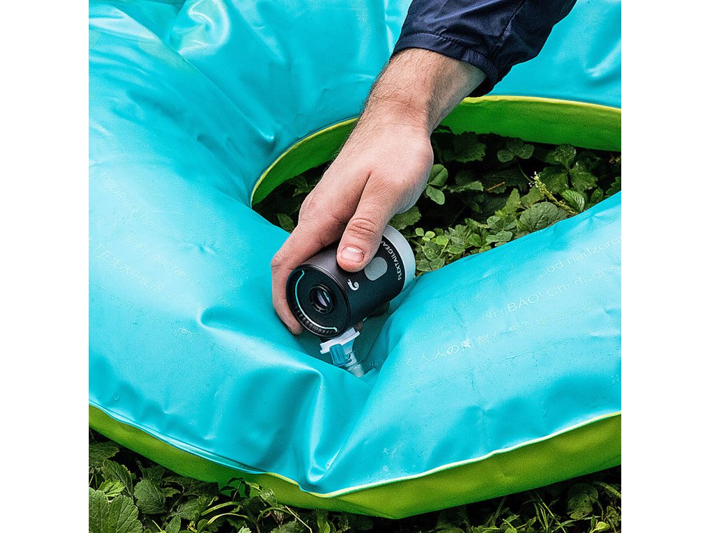 Při nafukování packraftů vám dodá objem. Konečné dotlakování je třeba dokončit pumpou nebo jiným způsobem dle typu packraftu. Ušetříte minimálně 90% námahy při foukání lodi.