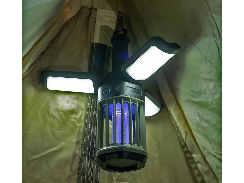 Nastavitelná tří segmentová svítilna s možností polohování a vypínání jednotlivých segmentů je doplněna o UV lapač komárů. Odolná proti vodě.