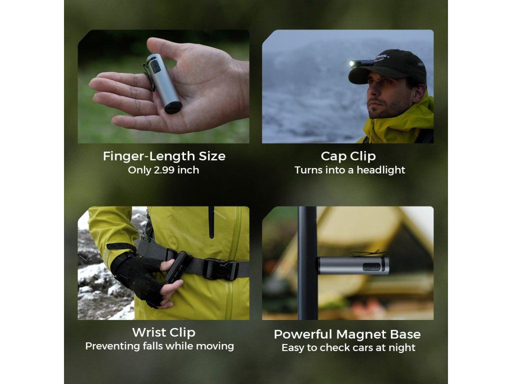- Vysoký měrný výkon: Svítivost až 1200 lm v těle vážícím pouze 49 g (bez EDC pouzdra).